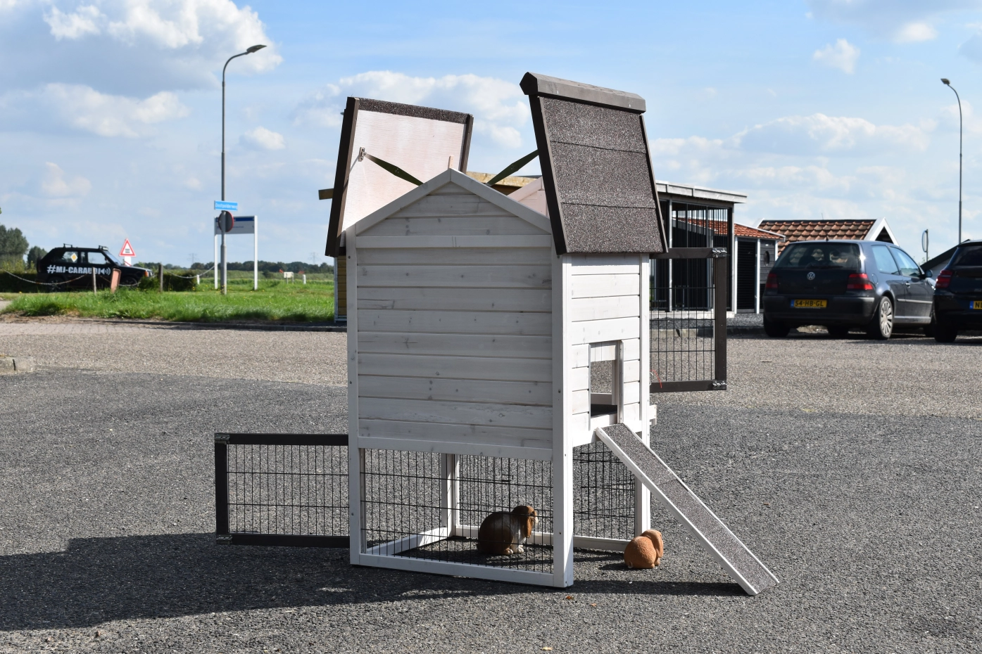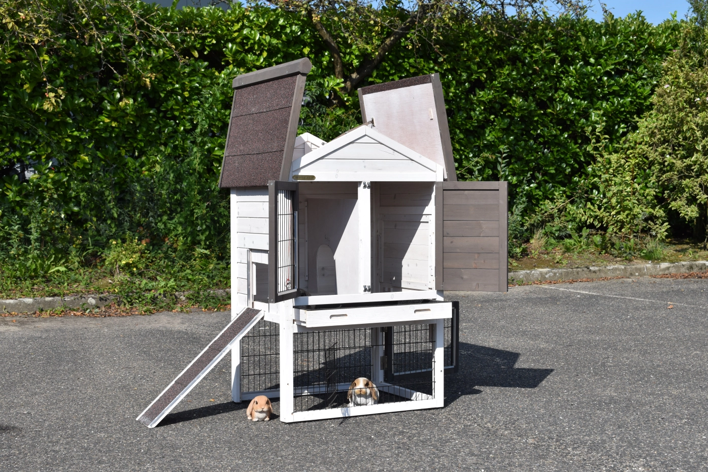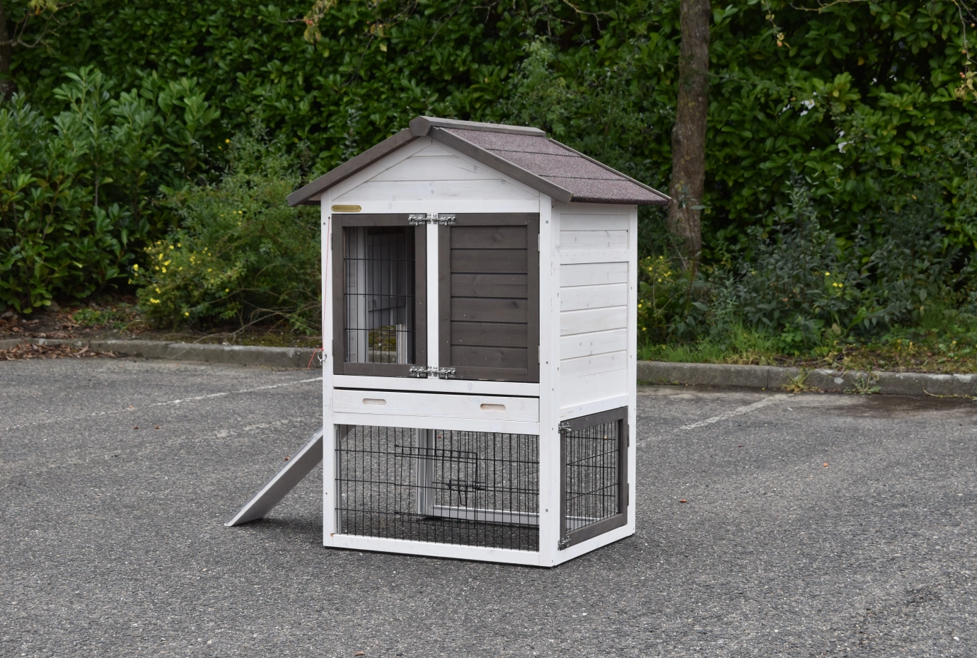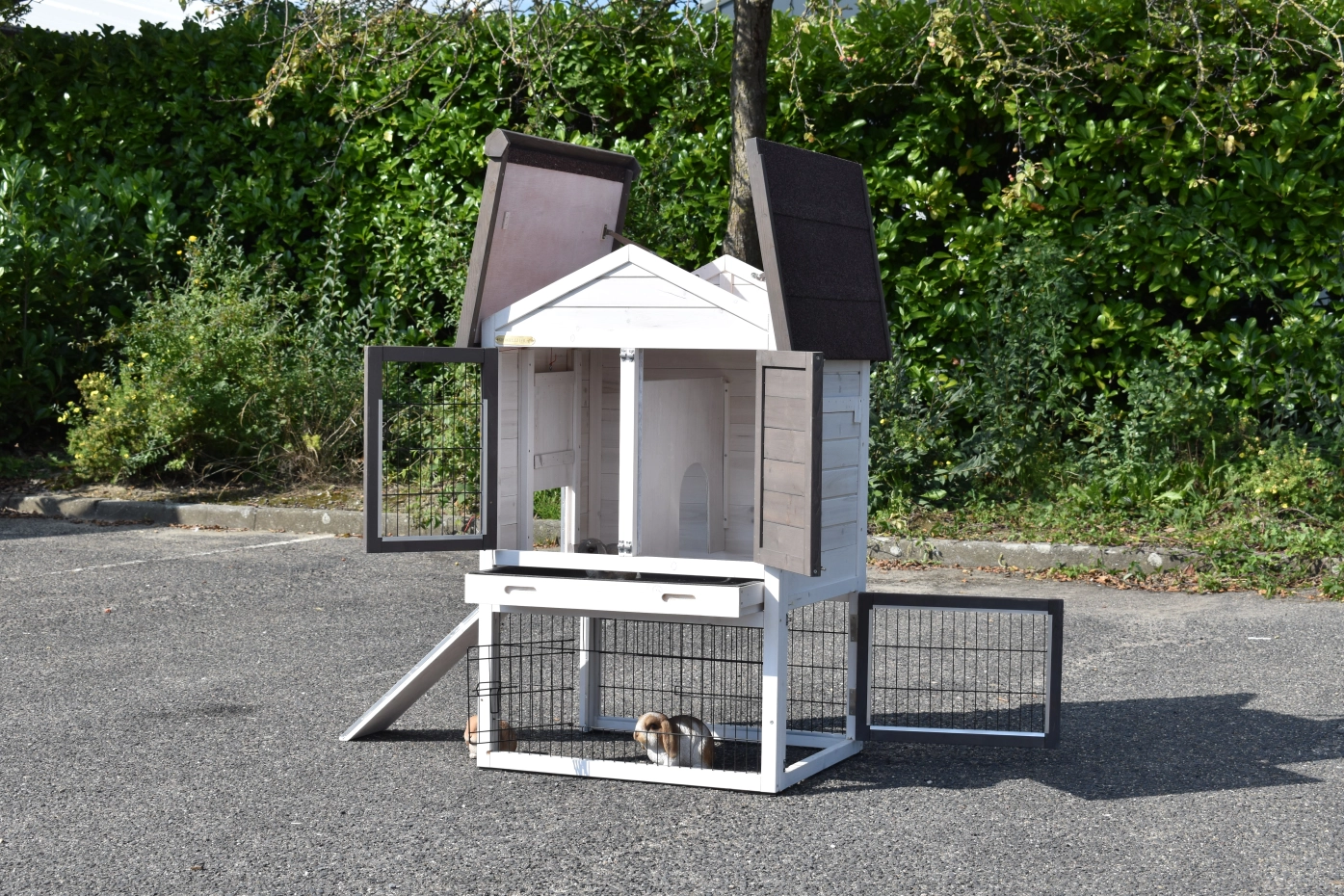 - The doors of this rabbit hutch are equiped with double locks