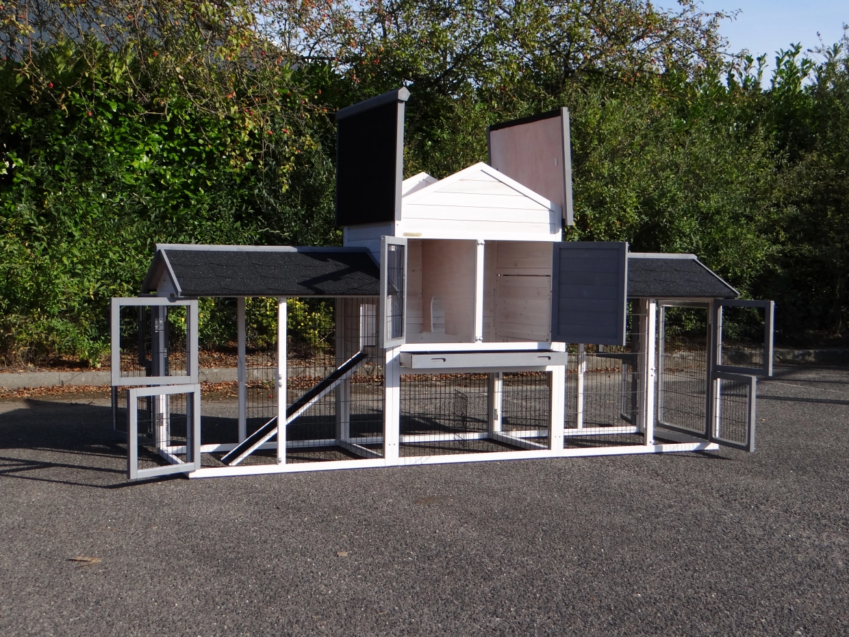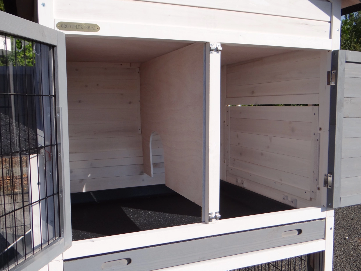 - The doors of this rabbit hutch are equiped with double locks