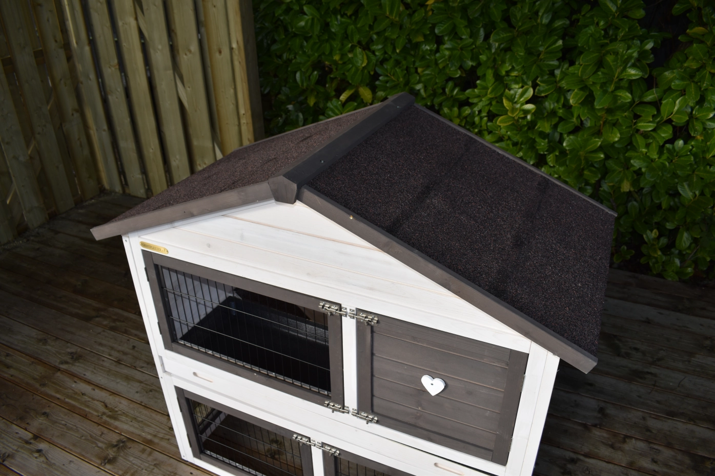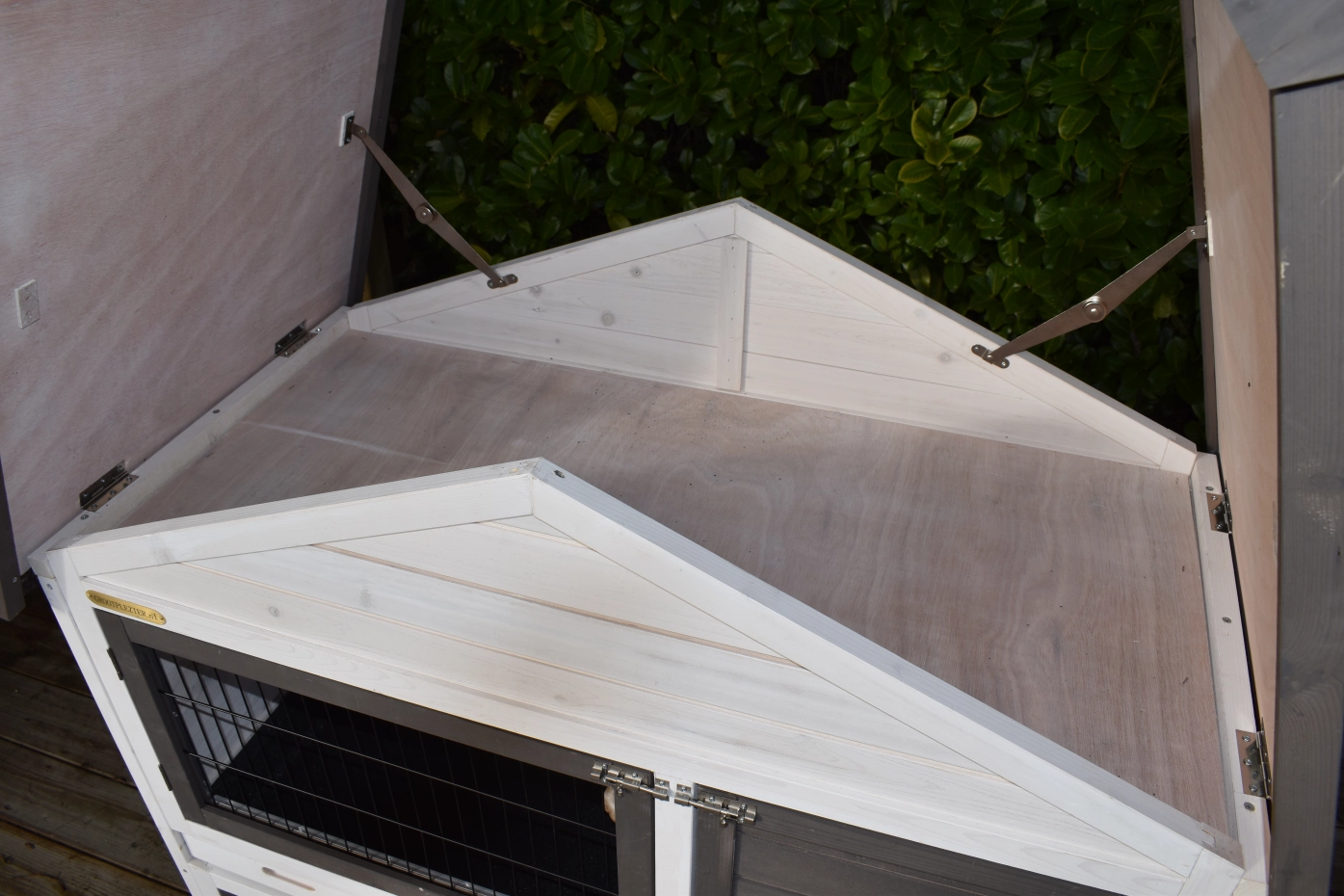 - The roof of this rabbit hutch is equipped with roofing felt