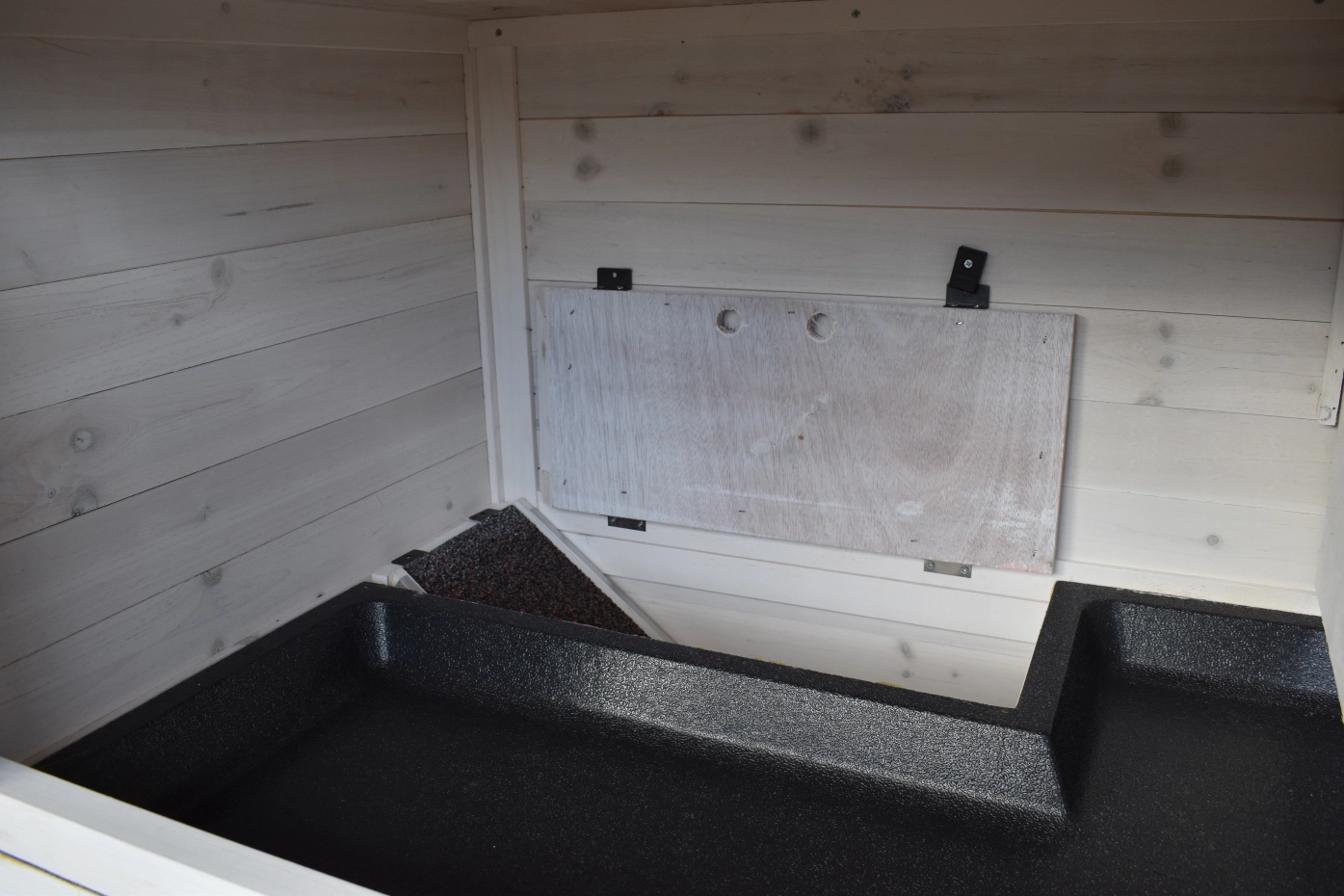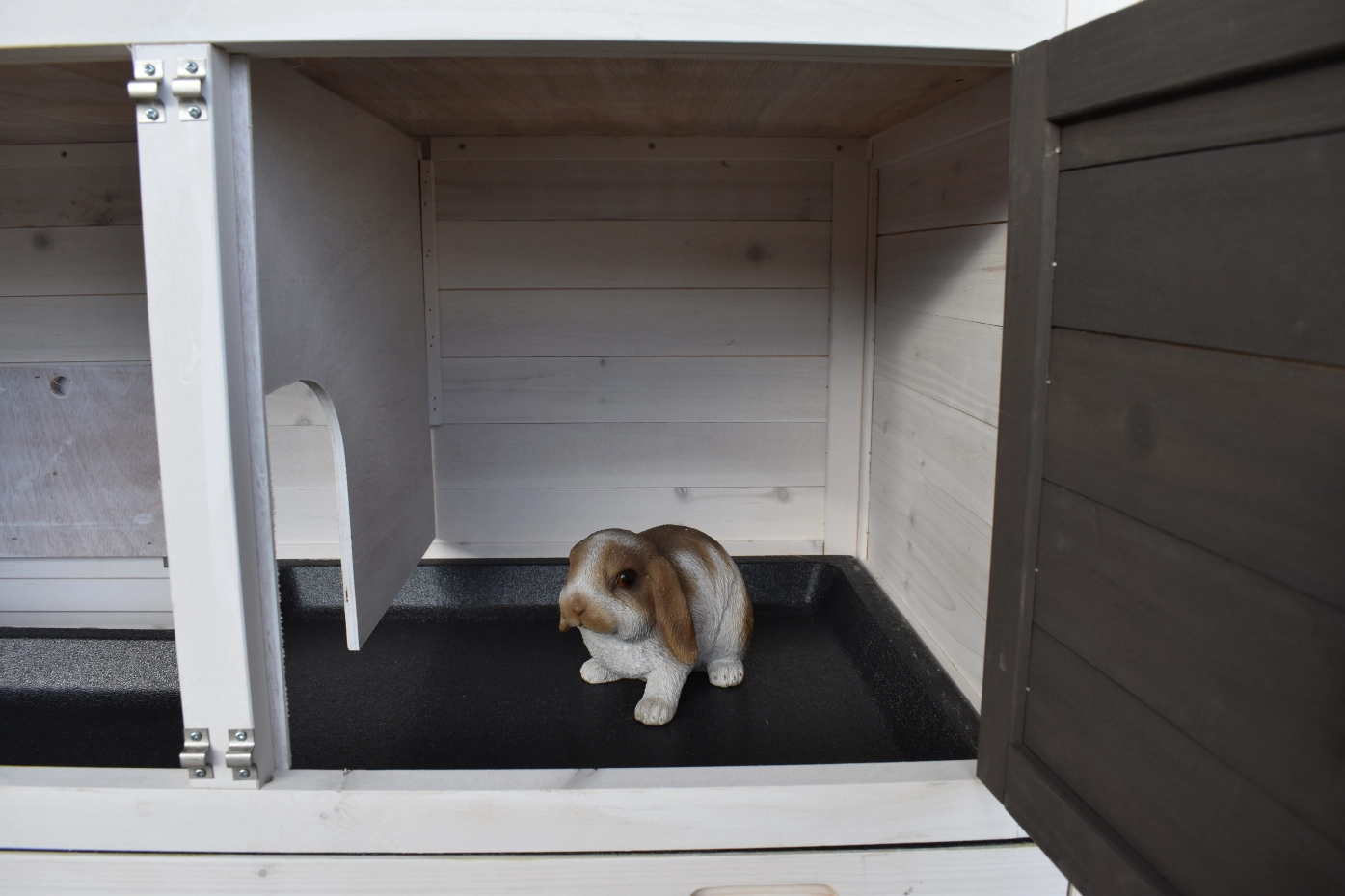 - The doors of this rabbit hutch are equiped with double locks