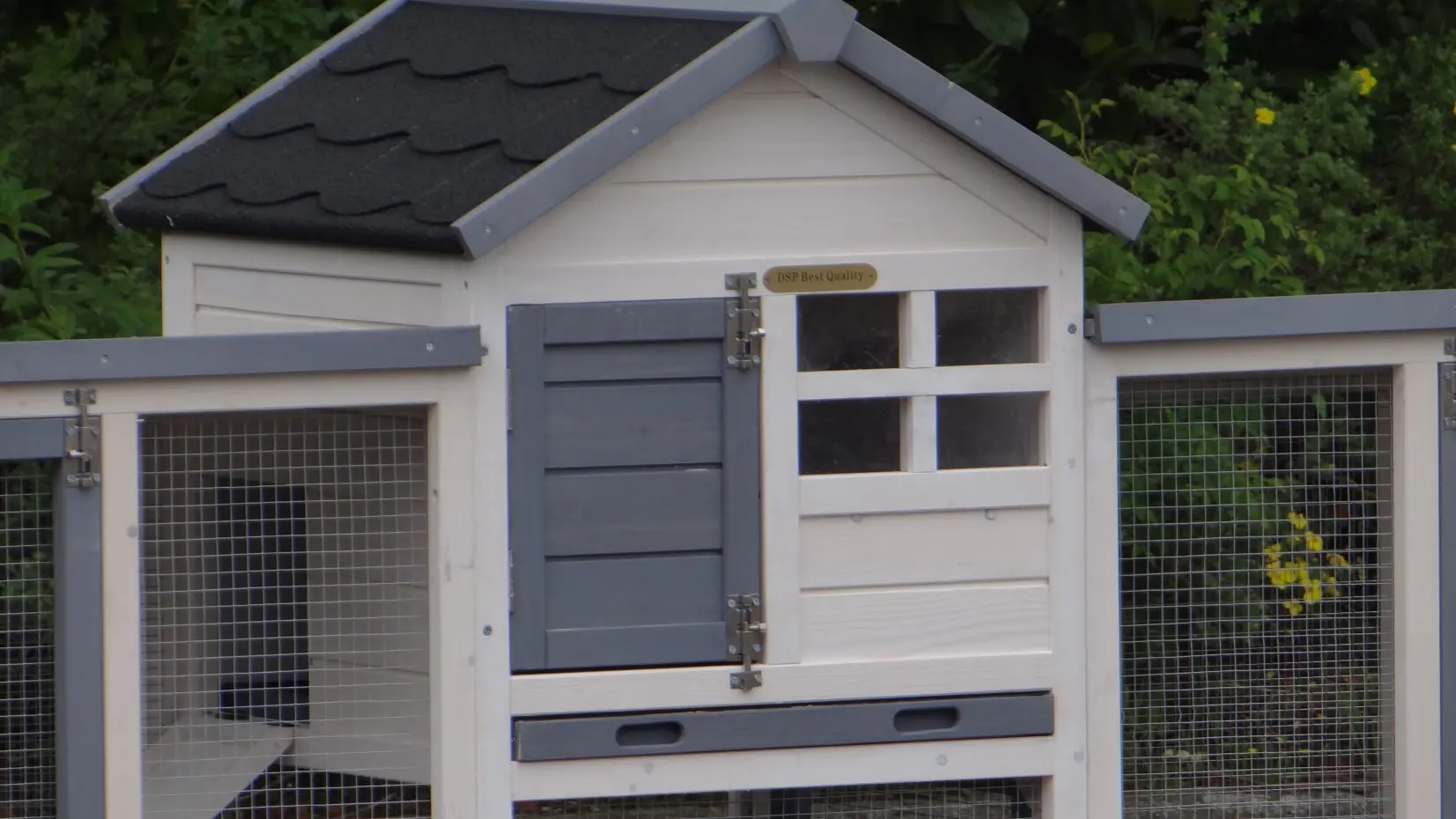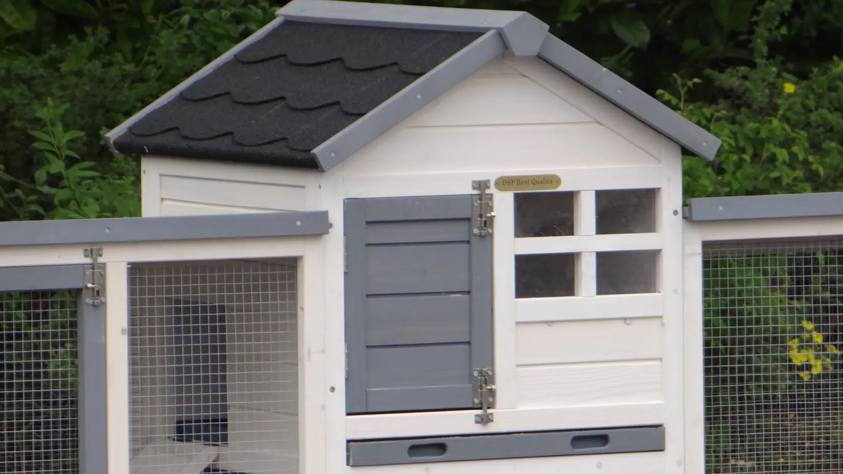 - The roof of this rabbit hutch is equipped with roofing felt