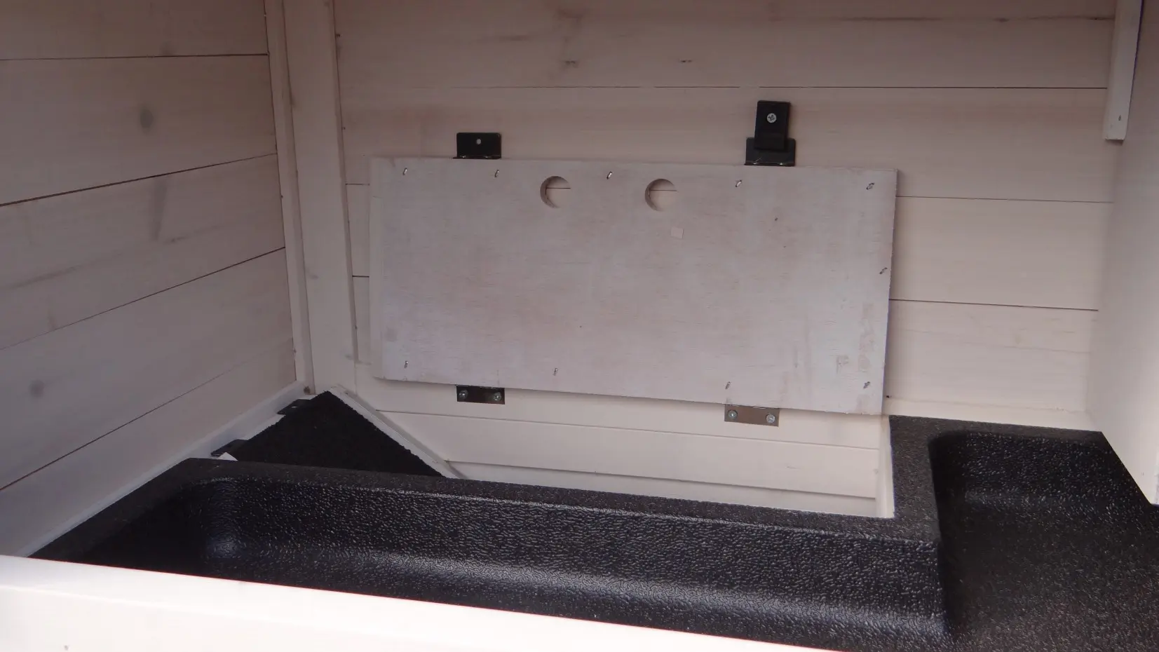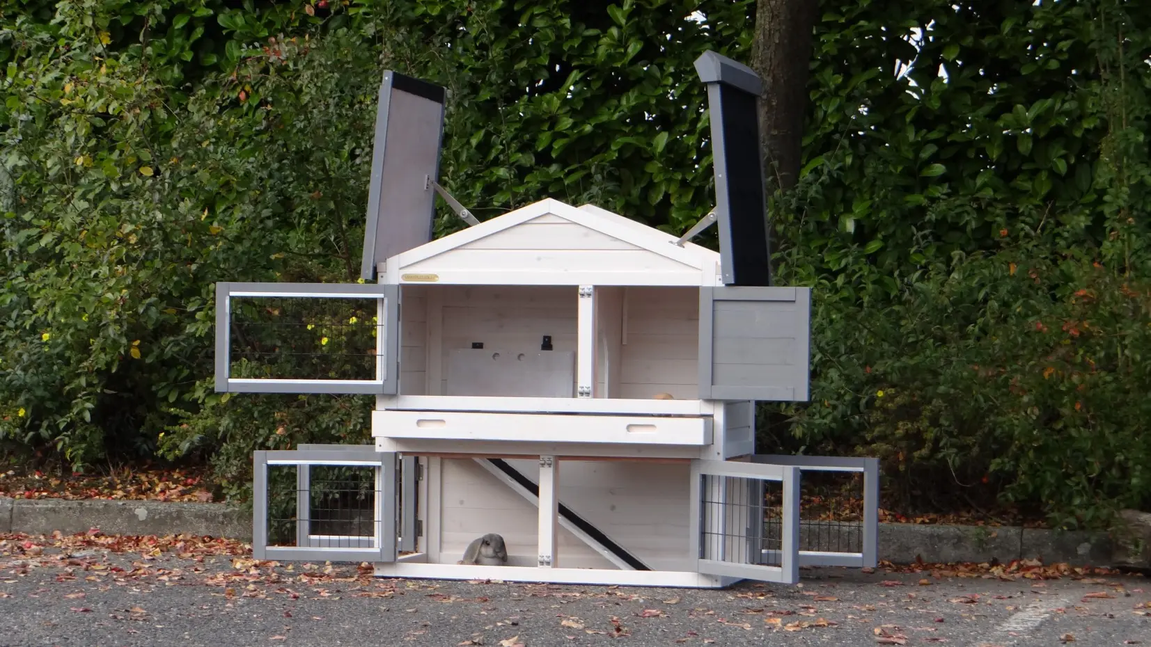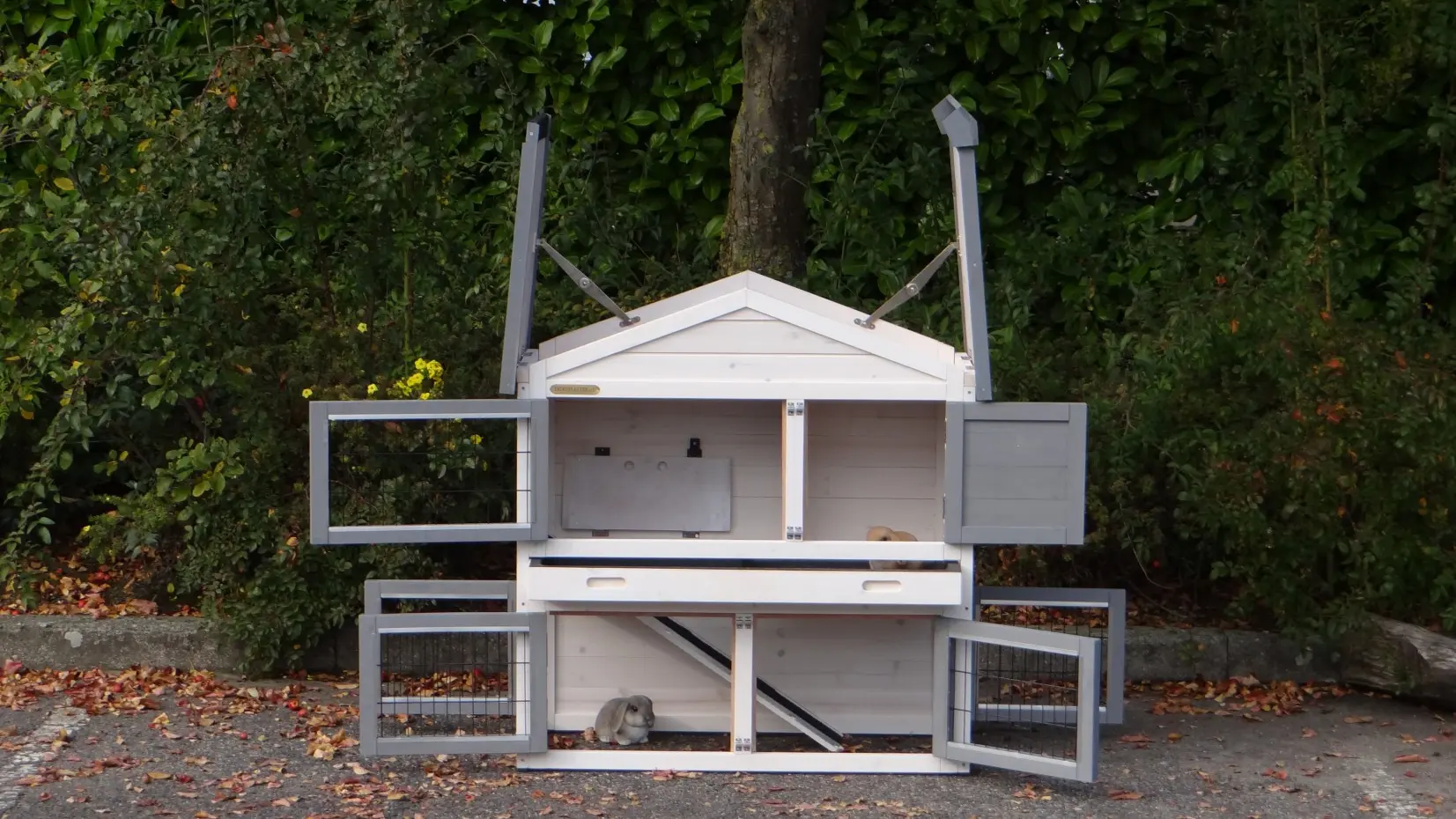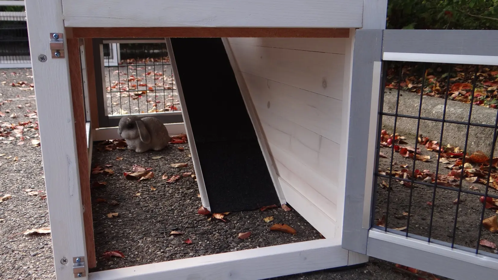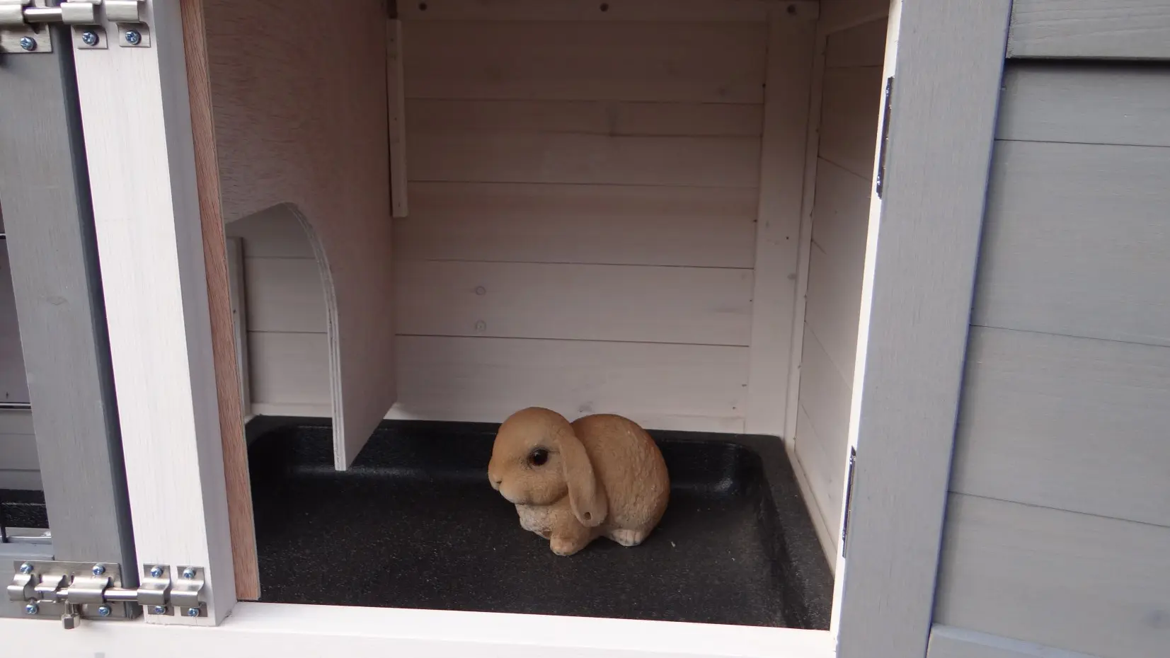 - The doors of this rabbit hutch are equiped with double locks