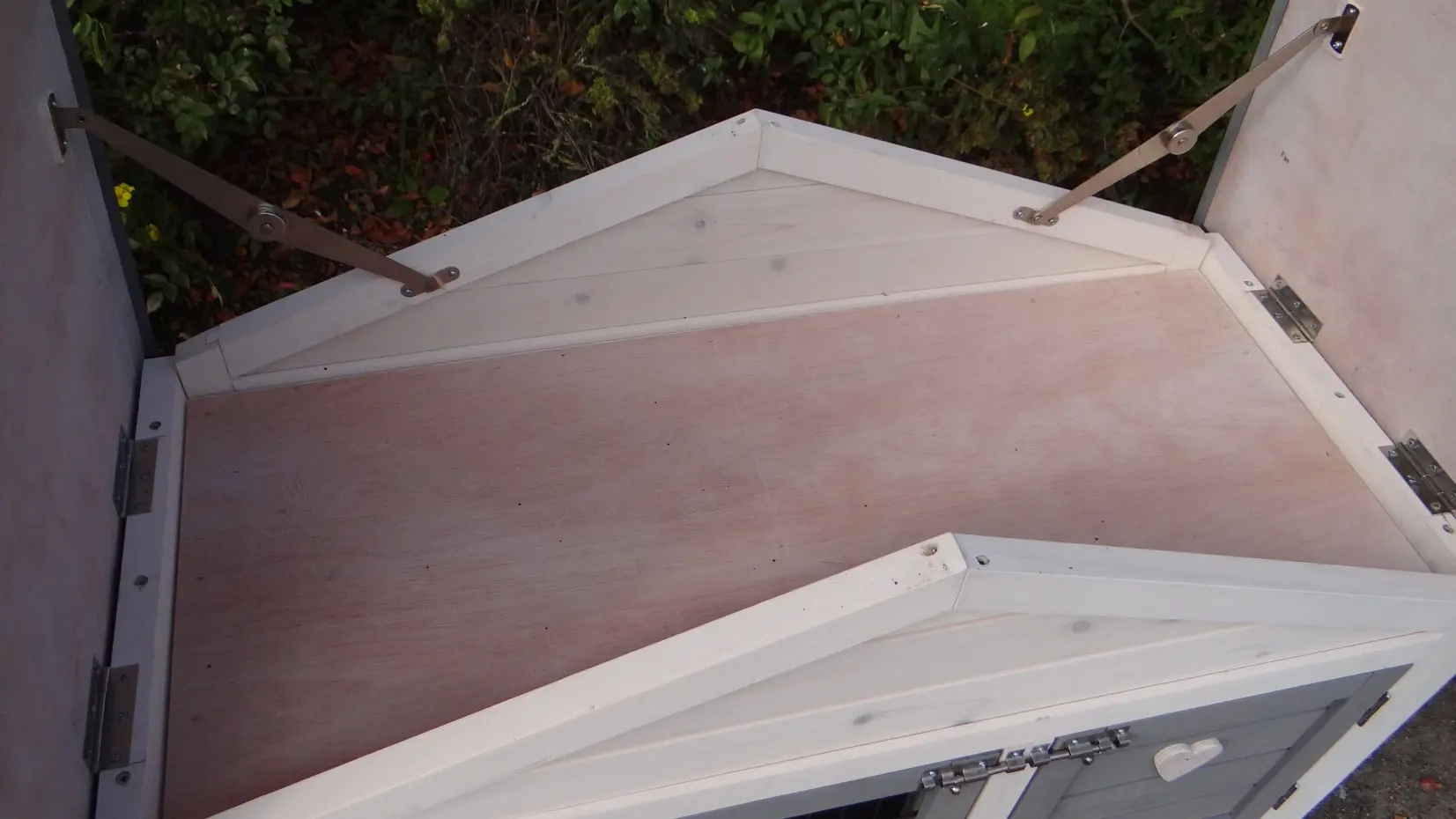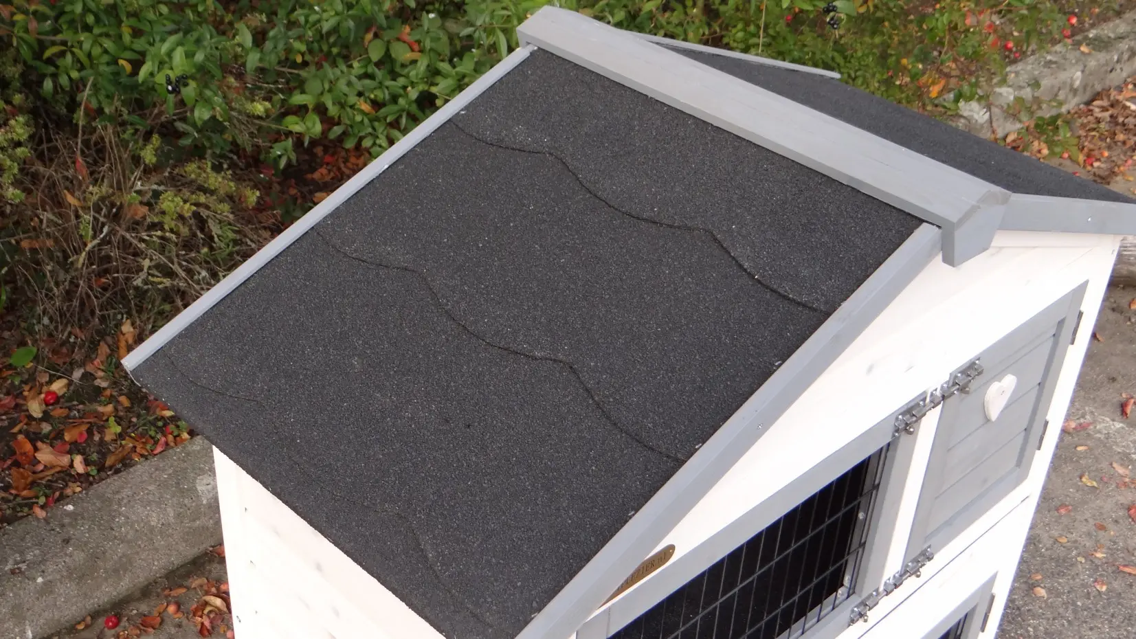 - The roof of this rabbit hutch is equipped with roofing felt