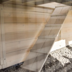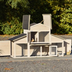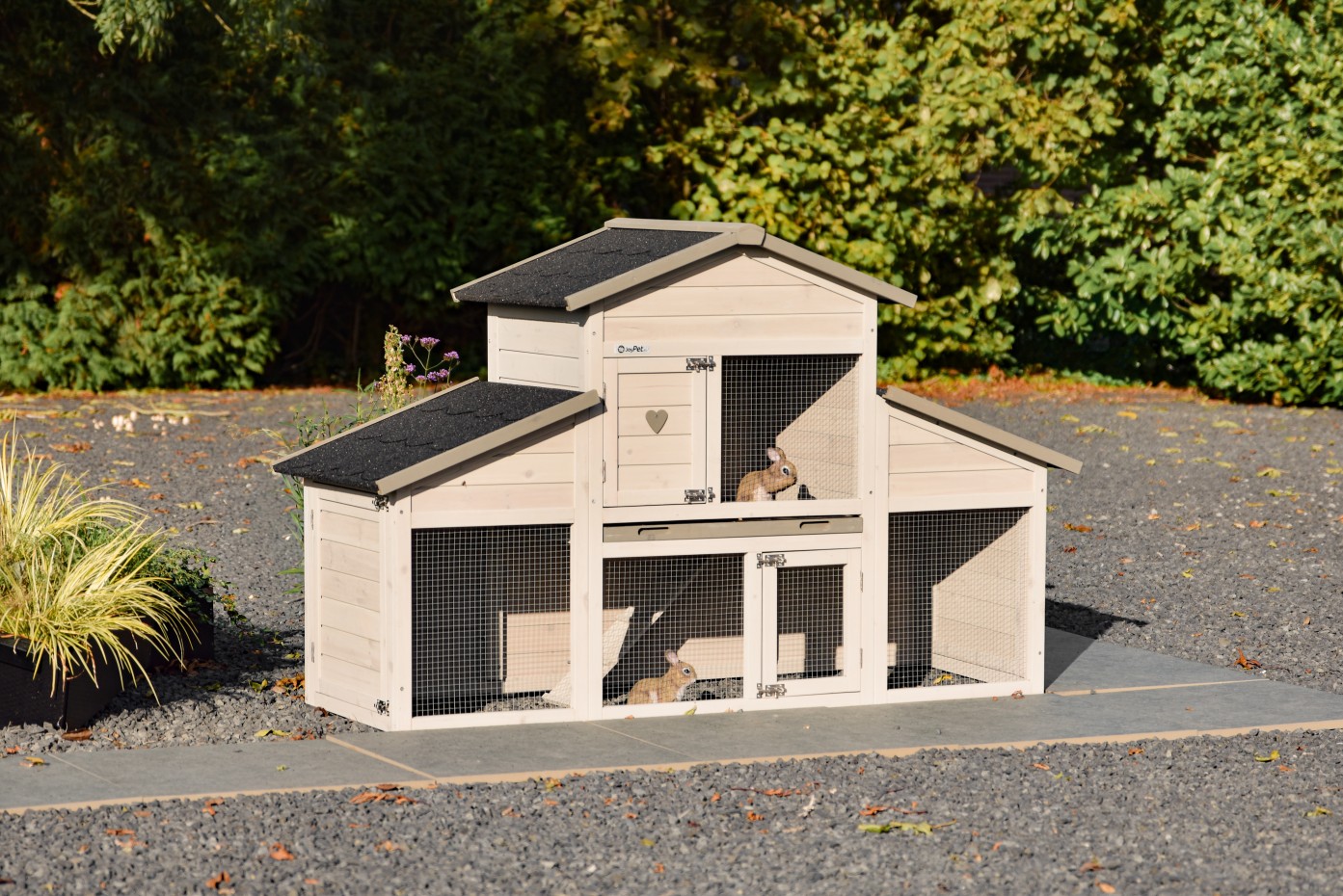 Rabbit hutch Annemieke with solid back and side walls featuring spacious doors. This beautiful rabbit villa provides excellent shelter from rain and wind. A plexiglass insulation set is included for attaching to the mesh panels, providing even more protection against wind and rain. Rabbit hutch Annemieke is truly a sight to behold.