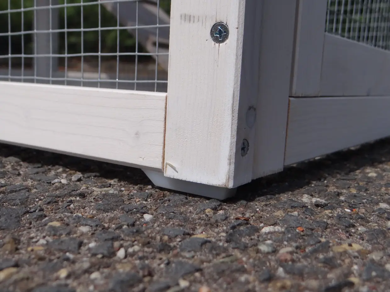 It is advisable to treat the hinges and locks periodically with silicone spray or lock spray to prevent rust and corrosion. If the pet house is not in a covered place, we advise you to anchor the house.