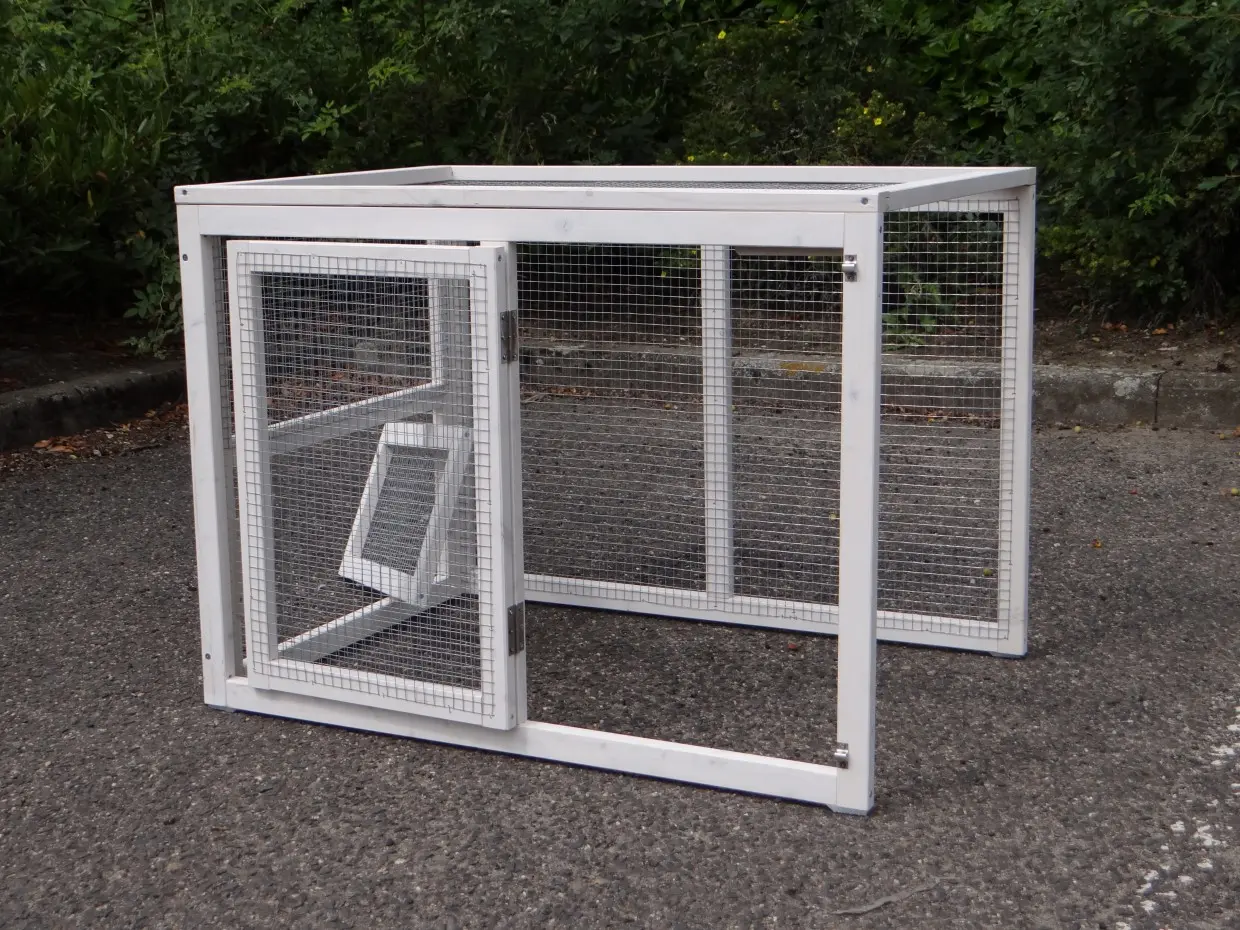 The additional run Joas is suitable for expanding your chicken or rabbit hutch. This animal run is perfect for giving your animals a bit of extra space. The enclosure has spacious doors, which make it easy to access. The run has a wire mesh roof and stands on rubber feet.