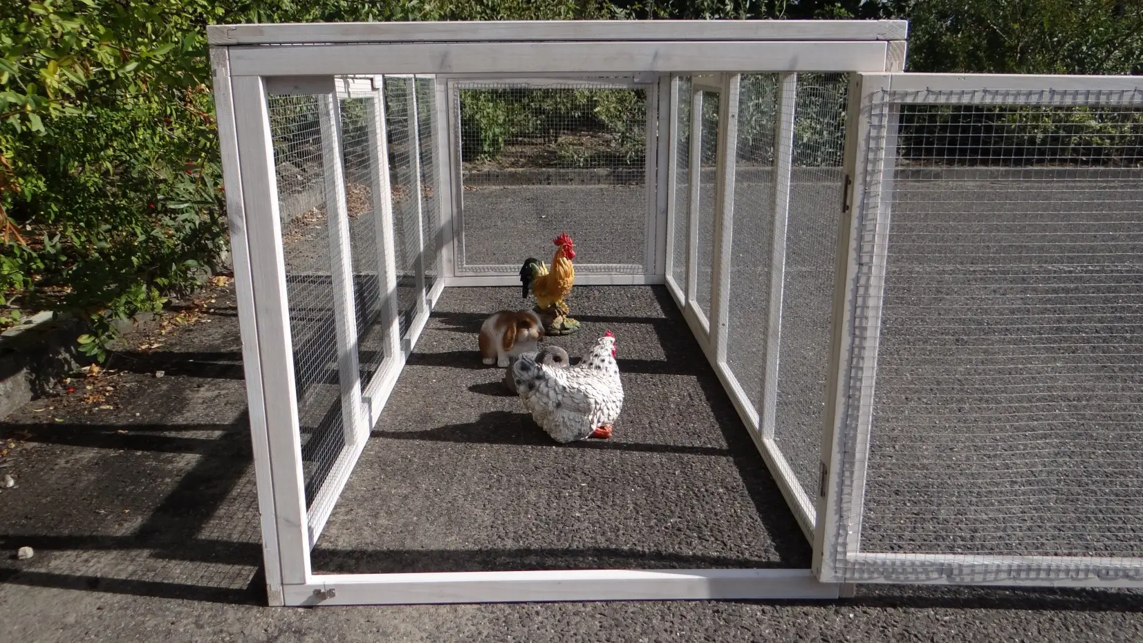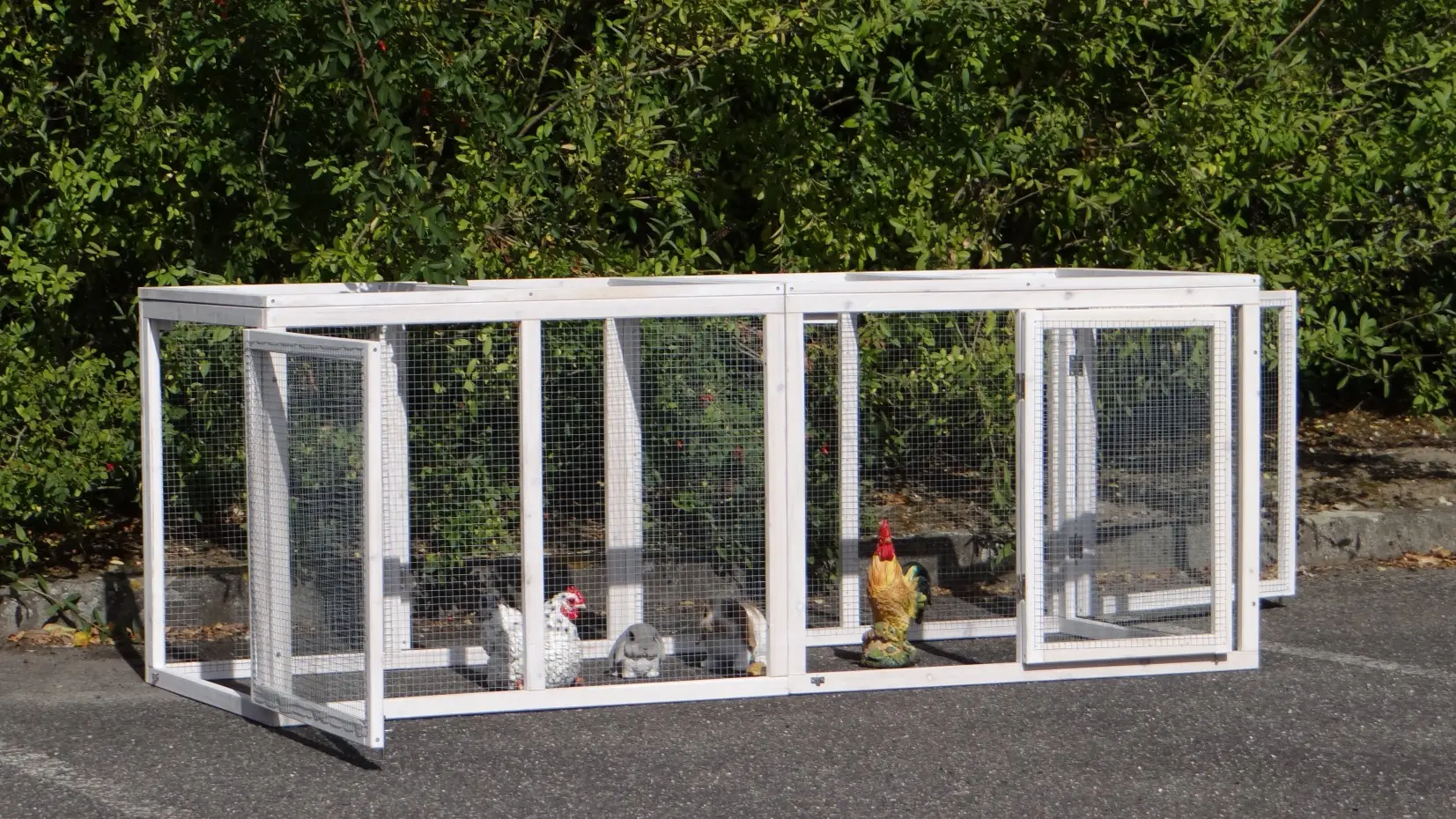 The double additional run Ambiance Large can be used as a standalone animal enclosure. It also combines well with various animal hutches, specifically with the animal hutch Ambiance Large. The runs are equipped with a wire mesh roof.