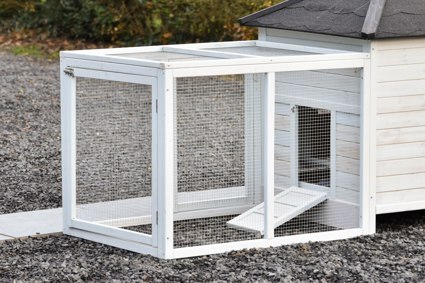 The extension run Ambiance Large is equipped with a wire roof. The rabbit enclosure can be easily combined with various animal hutches and is specifically suitable for the Ambiance Large animal shelter. Give your animals more space with the extension run Ambiance Large!