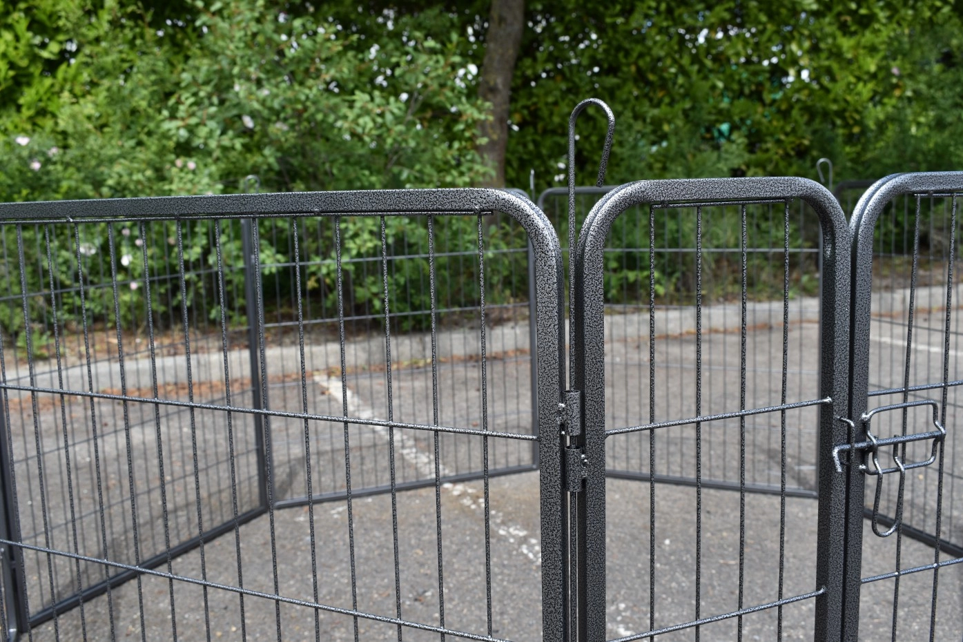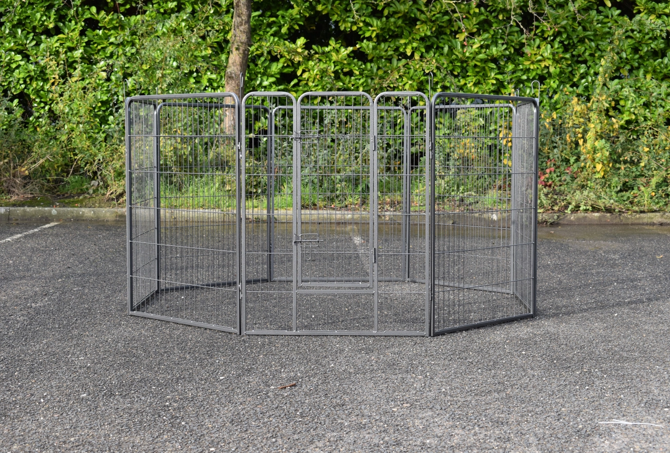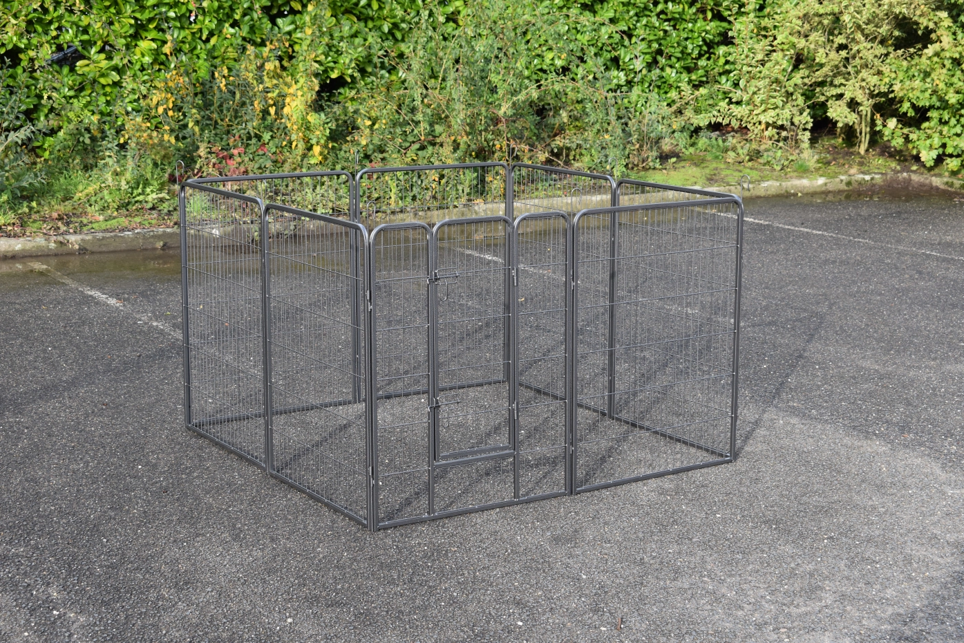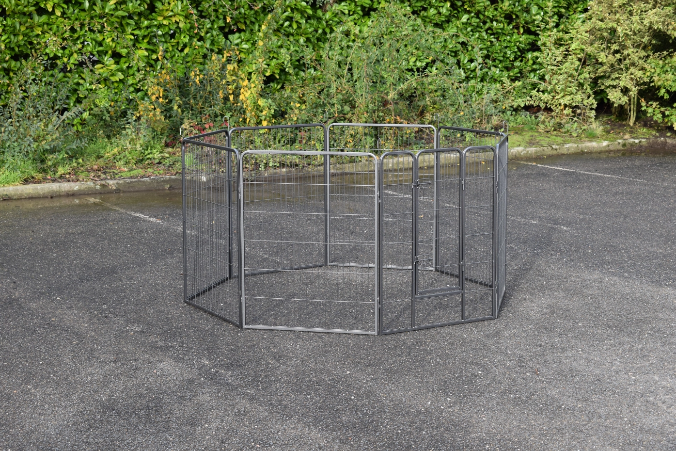 Rabbit enclosure Octa has a height of 100cm. The enclosure is made of powdercoated steel. The enclosure consists en 8 panels of 79x100cm. The run can be used for rabbits, puppy's or other animals.