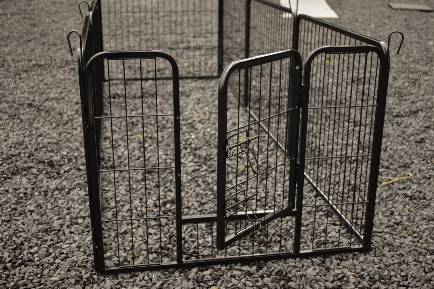 - 1 panel is provided with a door, so there is an easy way to get in the run