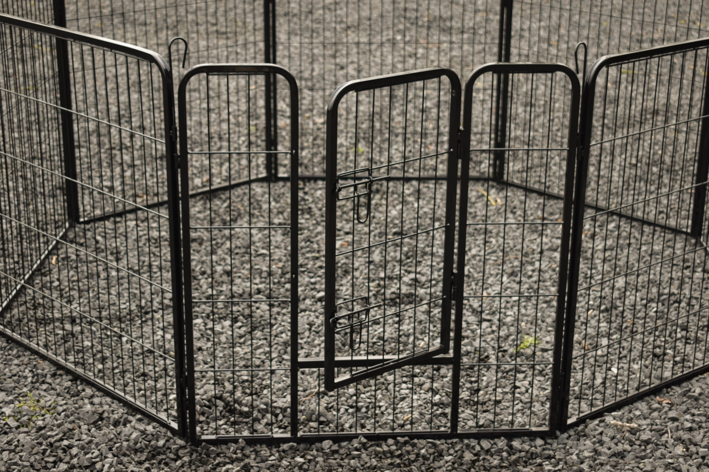 - 1 panel is provided with a door, so there is an easy way to get in the run