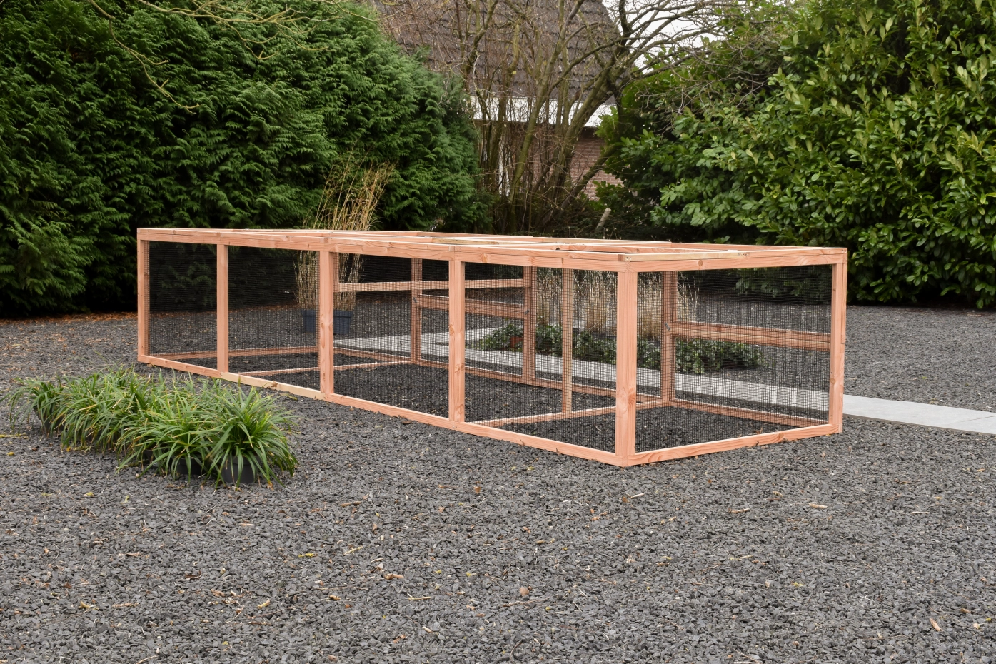Run Eggy is a separate run without a sleeping area, perfectly suitable for chickens, rabbits, and even cats. This spacious run offers plenty of room for movement and features 4 foldable roof panels, making it easy to access for thorough cleaning. A practical and roomy solution for your animals!